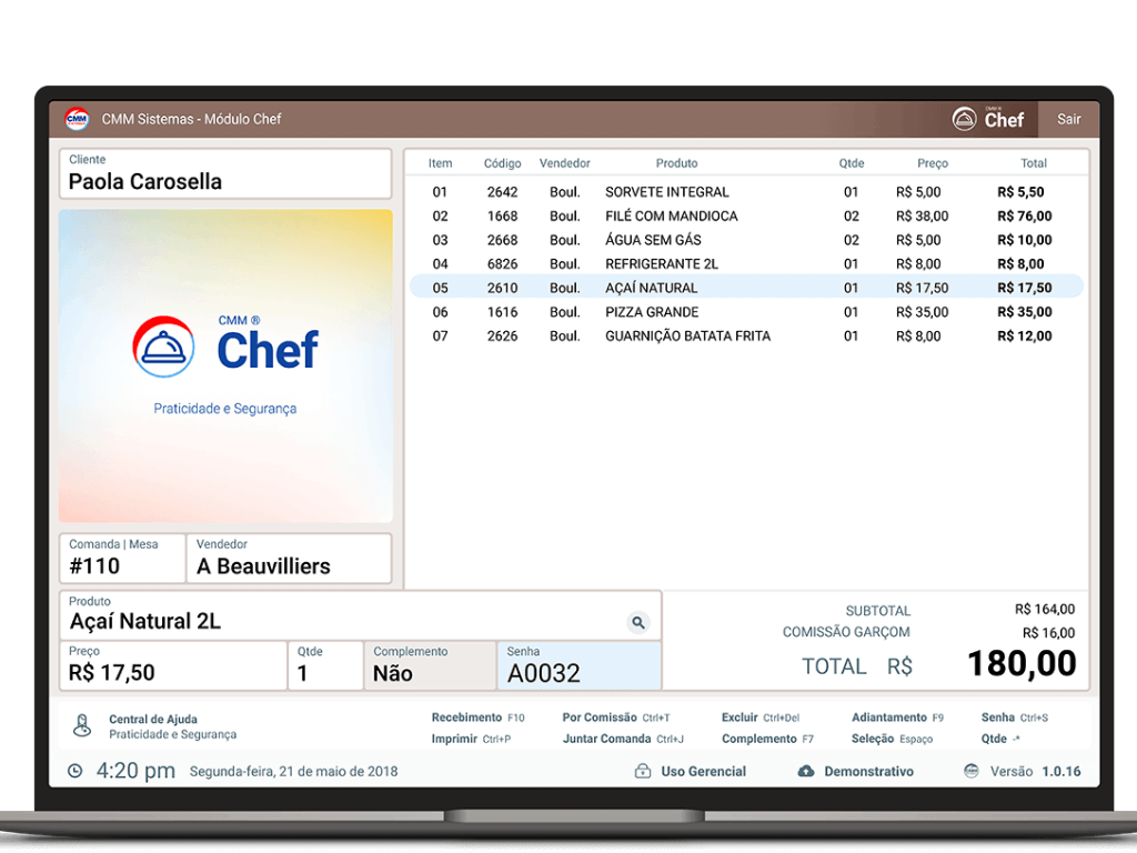 Perfeito para Confeitarias, Panificadoras, Restaurantes, como Bistrôs, Cantinas, Cafés, Espetos, Fast Good, Hamburgueria, Lanchonetes, Pizzarias, Rodízios, Self Service, Sushi Bares e Temakerias entre outros. Além do melhor custo/benefício do mercado, suas características únicas facilitam a operação de ditos ambientes, providenciando gerenciamento de mesas, atendimento via mobile e comanda individual digital.
