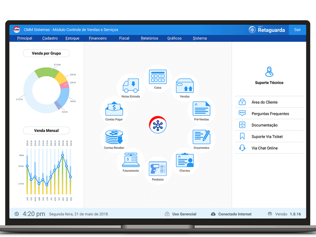 Reúne as principais ferramentas e recursos para uma excelente gestão administrativa do comércio varejista, permitindo aprimorar e otimizar operações de maneira simples e rápida com relatórios detalhados para auxiliar nas tomadas de decisões.